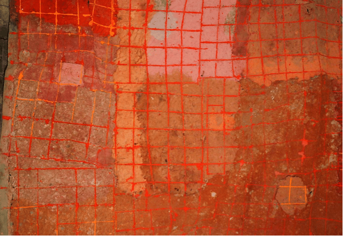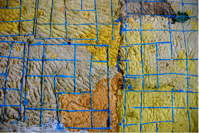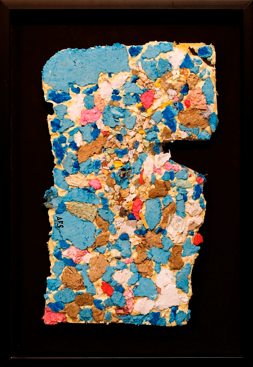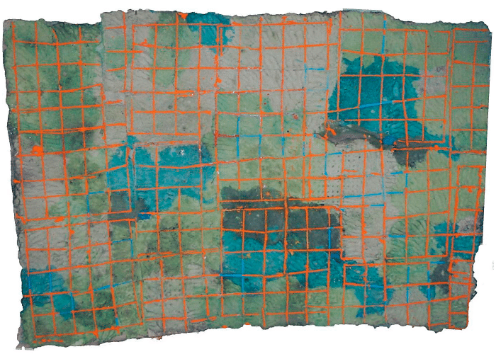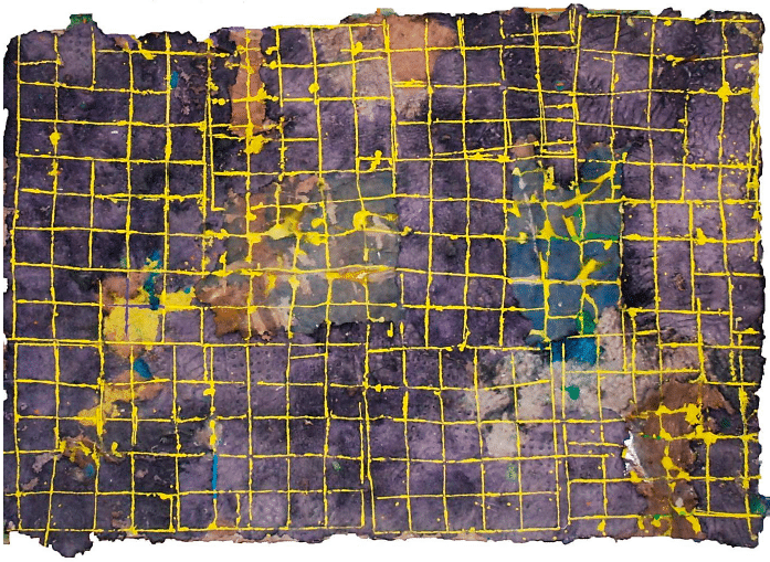 The «Grids» series combines the linearity of an excavated grid on top of a base of textured and polychrome paper pulp that serves as its background. Chromatically, the graphic ingredient has been treated with a glaring tone that makes it emerge by contrast.